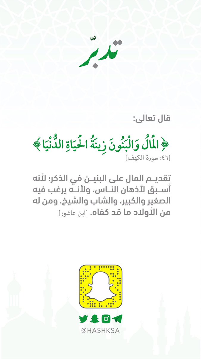 هاشتاق السعودية On Twitter لماذا ق د م المال في قوله تعالى المال والبنون زينة الحياة الدنيا Https T Co Fckacd5pxa