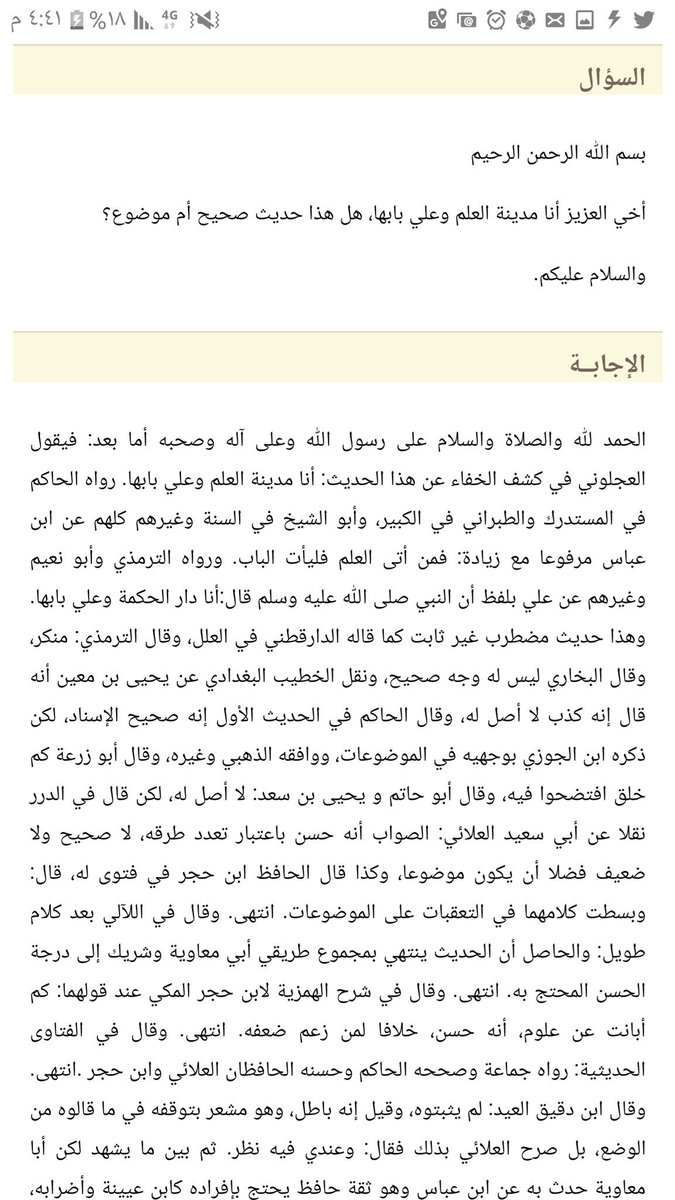 حديث أنا مدينة العلم وعلي بابها يقول الأحاديث الضعيفة والباطلة Facebook