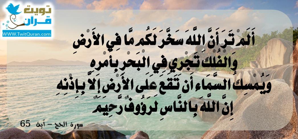 ٦٥ الحج أ ل م ت ر أ ن الل ه س خ ر ل ك م م ا ف ي ال أ ر ض و ال ف ل ك ت ج ر ي ف ي ال ب ح ر ب أ م ر ه و ي م س Islamic Quotes Quran Verses Ahadith