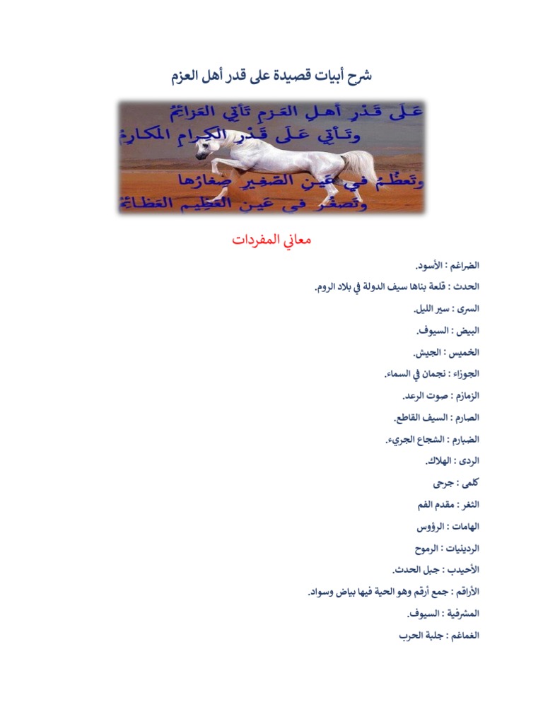 شرح قصيدة على قدر اهل العزم