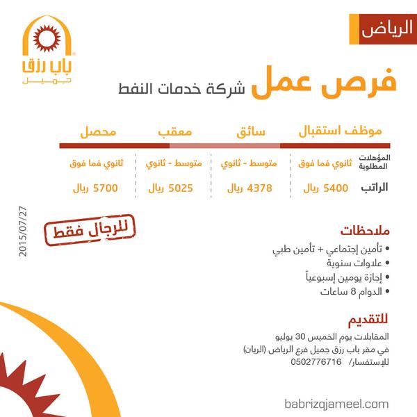 شركة خدمات النفط وظائف استقبال وسائق ومعقب ومحصل في الرياض