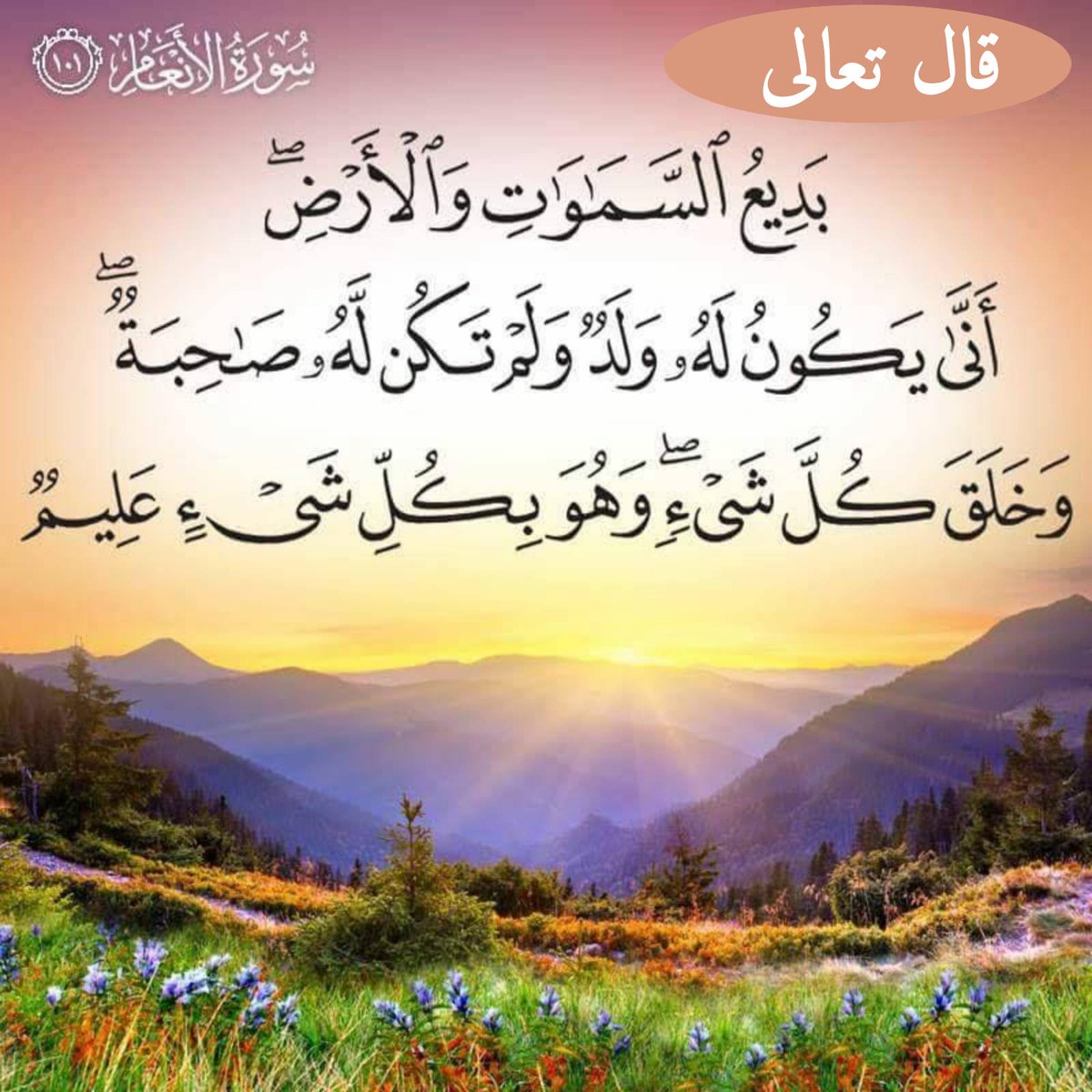 البطاقة الإسلامية On Twitter والله تعالى هو الذي أوجد السموات والأرض وما فيهن على غير مثال سابق كيف يكون له ولد ولم تكن له صاحبة تعالى الله عما يقول المشركون علو ا كبير ا