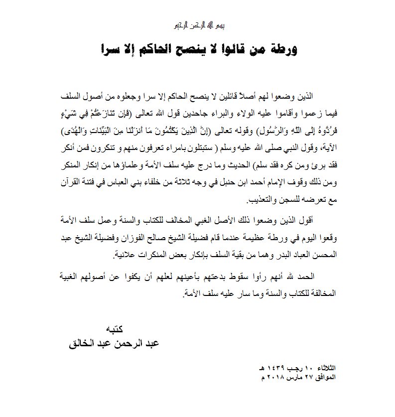 عبدالرحمن عبدالخالق Sur Twitter ورطة من قالوا لا ينصح الحاكم إلا سرا بقلم عبد الرحمن عبد الخالق الثلاثاء 10 رجــب 1439 هـ الموافق 27 مارس 2018 م Https T Co Pgyrcb7est Https T Co P2q12kqu42