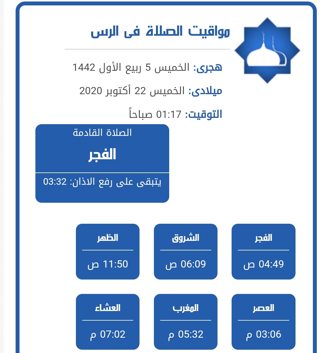 اوقات الصلاة الرس